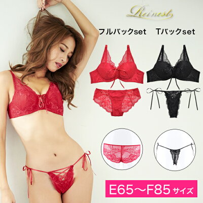ブラジャー ショーツ セット 選べる レース アップ ブラジャー & フルバック or Tバック ショーツ [Reinest]| 大きいサイズ ブラ セット 下着 レディース セット ランジェリー 下着 セクシー 上下セット